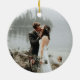 Célébrez votre premier Noël marié avec ce ornement de Noël terreux et chaleureux avec votre photo fiançailles sur le dos, une arrière - plan d'écorce de bouleau et une couronne d'eucalyptus, et personnalisée avec vos noms, année mariage, et "Notre 1er Noël en tant que Mr. & Mme" en typographie lettrée à la main. Copyright Invitations élégants, tous droits réservés.