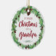 PREMIER NOËL moderne en GRANDPA dans une police de caractères manuscrite de brosse et l'année dans une couronne à feuillage persistant de pin sur le devant et une photo dans la conception de la couronne sur le dos. CONSEIL PHOTO : Pour obtenir les meilleurs résultats, choisissez une photo avec le sujet au milieu et/ou pré-rognez-la sur une forme carré AVANT de télécharger. Contactez le concepteur via Zazzle Conversation ou makeitaboutyoustore@gmail.com si vous souhaitez modifier ce design, sur un autre produit ou pour coordonner des éléments.