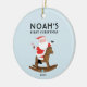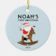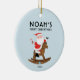 Illustration de Père Noël à cheval à bascule adorable. Modifier le texte pour ajouter le nom et l'année.