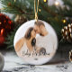 Chérissez vos premiers souvenirs avec votre bébé avec ce joli ornement de Noël. Le design simple présente "Baby's First Christmas" dans une police de texte moderne sur le devant avec le nom de votre bébé et les statistiques de naissance sur le dos. Personnalisez avec vos photos. Ce ornement sera un trésor pour toujours.