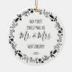 Cette conception comporte une couronne noire et blanche d'ornements de Noël, de baies sèches et de feuillage, entourant les mots "Notre premier Noël en tant que Monsieur. & Mrs." dans des polices d'imprimerie noir fantaisie et d'écriture manuscrite. Customisez l'avant avec votre nom de famille et l'année, et l'envers avec votre photo carré préférée. (Un arrière - plan léger fonctionne le mieux avec le cadre de couronne noir et blanc, ou retirer le cadre si vous le préférez).