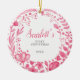 Pretty Pink Floral Custom Baby's First Christmas Ceramic Ornament. Personalize with your custom information on both front and back