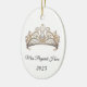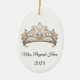 This ceramic ornament is shown with a sparkling crystal tiara with black text on a white background.