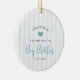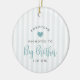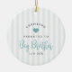 This sweet promoted to big brother Christmas gift ornament features modern script lettering and a simple and classic design. A sweet blue illustrated heart sits on top of a modern white washed blue striped pattern. Personalized name with big brother script and your custom date and year are easily personalized on the front of the ornament. The back is one full photo of the newborn baby and their promoted big brother. This elegant ornament makes a beautiful gift for a new first time brother, and can also be a thoughtful gift to friends and family as an announcement of your child's birth.
