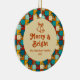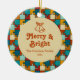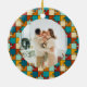Célébrez les vacances joyeuses en famille avec notre ornement en céramique ronde "Puzzle Vintage Merry & Bright Family Photo". Ce design présente un motif de puzzle vintage élégant avec une cloche de jingle monoline, texte de police rétro "Merry & Bright", les noms de la famille, et l'année. Au fond, une photo de votre choix. Cet ornement unique apportera une touche d'élégance à vos décorations maison de Noël.