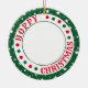 Amateurs de lapin, Hoppy Christmas pun personnalisable ornement en céramique en vert. Ajoutez une image de votre lapin animal de compagnie à cette photo recto verso décoration d'arbre de Noël.