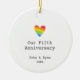 Rainbow Heart Personnalisé LGBT 5e Anniversaire de la céramique ornement. Personnalisez avec vos informations personnalisées à l'avant et à l'arrière.