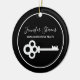 This modern realtor Christmas ornament is custom made with your realty company name under the the agent name in chic typography. This minimalist black and white gift features an elegant gold house key. Contemporary holiday present for an agent working to help you buy a home.