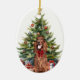 A l'avant de cet ornement de vacances se trouve l'image d'un joli Setter Dog irlandais portant un arc rouge festif. Le chien est assis devant un Holiday tree décoré. Au verso, le texte rouge et vert indique MERRY CHRISTMAS", et il y a des champs de texte supplémentaires pour vous de customiser. Faites-le dire ce que vous voulez !