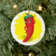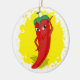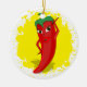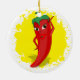Un personnage de dessin animé rouge et poivre chaud. Design original avec arrière - plan de peinture jaune. Des ornements en céramique sur mesure. Idée cadeau.