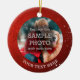 Concevez votre propre tenue ou ornement cadeau avec une ou deux photos sur cet ornement en céramique recto verso avec un arrière - plan rouge avec un flocon de neige et des étoiles blanches et votre texte personnalisé. La conception et le texte sont dupliqués des deux côtés. Utilisation pour la famille, bébé et enfants, les couples ou les photos d'animaux. Communiquez avec le concepteur AVANT DE COMMANDER pour obtenir des modifications de conception ou de l'aide.