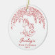 Personalized baby's first Christmas ornaments feature whimsical hand drawn doodle floral and rocking horse in festive red and white, cute and modern.