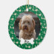 Personnalisez ce design ornemental festif avec une photo de votre chien chiot avec son prénom sur la plaque d'identification monogramme de l'os du chien. Un grand cadeau de conservation pour les amoureux de les chiens, pour célébrer le premier Noël d'un chiot ou pour chérir la mémoire d'un chien de famille bien-aimé.