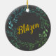 Jaune Blitzen le renne dans le ciel nocturne entouré d'une couronne de bleu et de vert.