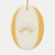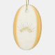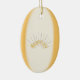 This design is featuring "Anniversary" in colors of yellow and black spikes. Tiny hearts as spikes. A golden backround represents a golden anniversary. A white feathered opaque is inserted in the center of the ornament. This ornament will make a beautiful gift to your loved one for 50 years of marriage. These are available in assorted shapes. Customize with your own information on the back of the ornament.