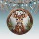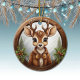 Cet ornement de Noël de rennes présente un cadre rond en bois marron avec des baies rouges de Noël et des feuilles verts qui lui donne un aspect rustique et douillet. À l'intérieur de l'ornement, un animal mignon, cerf aux bois, dans un style graphique cartoon, portant une veste brune et une cravate arc, debout au premier plan. Les pins arrière - plans complètent le charme de la saison des fêtes de cette décoration unique et délicieuse. Même image est à l'avant et à l'arrière. Cela garantit que peu importe la façon dont l'ornement se transforme, il a toujours l'air festif et complet. 🦌 🎄
