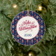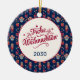 Ce fabuleux ornement de Noël folk art bleu ronde céramique avec un motif d'anges, noix, étoiles et cadeaux qui dit Joyeux Noël en allemand "Frohe Weihnachten" et a l'année aurait l'air stupéfiant sur votre arbre de Noël. C'est tellement festif et va avec n'importe quel décor de Noël, c'est rustique mais rétro et moderne mais traditionnel ! Obtenez certains comme cadeaux pour les proches...ils vont adorer !
