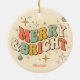 Décoration En Céramique Retro Groovy Merry & Bright Christmas