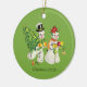 Décoration En Céramique Retro Snowcouple sur l'Arrière - plan vert