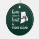 La maison de Rhode Island est où le coeur est - en caractères mixtes et en majuscules blancs avec la silhouette de l'état et un coeur rouge embellissement. Placez sur le vert bouteille. Personnalisez un côté avec votre nom ou message en caractères blancs.