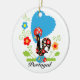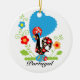 Le Rooster Portugais de la Chance ou le Rooster Portugais de Barcelos est l'un des symboles portugais les plus populaires. A l’étranger, il est connu comme le coq portugais ou Cockerel. Vous pouvez trouver ce coq dans tous les coins du Portugal, c'est un souvenir populaire. Ce coq décoré de petits coeurs et de fleurs fait un cadeau parfait pour ceux nés au Portugal ou ceux qui aiment ce pays. Elle évoque la mystique de la Foi, de la Bonne Chance et de la Justice. La légende du coq Barcelos raconte l'histoire d'un pèlerin qui se rendait à Saint-Jacques de Compostelle, accusé d'avoir volé de l'argent à un propriétaire foncier. Il était un étranger dans la région de Barcelos et personne ne croyait que ce dévot chrétien remplissait une promesse. Il a été rapidement reconnu coupable et condamné à mort par pendaison. Autorisé à plaider son innocence devant le juge, il a été emmené chez lui lorsque le magistrat était sur le point de se coincer dans un coq rôti. Le pèlerin a juré que, comme preuve de son innocence, le coq se lèverait sur son assiette et son corbeau. Le juge et les amis ont ri fort. Alors que le pèlerin était sur le point d'être suspendu, le coq s'est miraculeusement levé et a couru. Le juge s'est précipité à la potence du carré pour libérer l'innocent. La corde était autour de son cou, mais le noeud desserré protégeait le pèlerin d'être étranglé. Il a immédiatement poursuivi son pèlerinage. Le pèlerin était innocent et donc Dieu lui a fourni un miracle. Le coq signifie foi, car le pèlerin avait foi en Dieu, et il a donc été sauvé. Il est également pour la Justice, car nous devrions éviter de porter des jugements hâtifs ou des accusations sans preuve. Quant à LUCK, le Good Luck Rooster ou Lucky Rooster sont des noms populaires pour le Barcelos Rooster. Le coq a porté chance au pèlerin et on aime à croire qu'il nous apporte aussi un peu de chance !