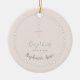 Baptême Rosary sur Pink Ce rosaire magnifique et délicat est parfait pour le Baptême de votre enfant. Le design se compose d'un chapelet de perles blanches et argentées avec une croix d'argent délicatement placée sur un délicat arrière - plan rose. Consultez les accessoires, les cadeaux, les faveurs de fête et la papeterie correspondants.