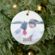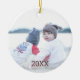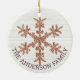 For a one of a kindermas keepsake or personalized vend just add your photo, nom and year to this 2 sided modern rustic rose snowflake ornament. The Front of this round ceramic ornament feobjets your favorite family photo behind a soft gradient overlay on the bottom half that the year in a dark mauve pink font pop. This unique photo ornament reverses to a faux gray and white background and a single faux rose gold glitter snowflake in the center with room along the bottom for your name or custom message, but you can delete the placeholder text if you wish. Create your own photo ornaments for the Christmas holidays with this simple white snowflake design template that coordinates with the full rose gold collection of matching items in the ArtfulDesignsByVikki store.