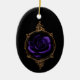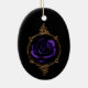 Un design sorcier gothique avec un rose violet foncé dans un cadre circulaire doré.