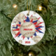 Cet ornement en céramique à thème cool de baseball / softball présente pour lui une "explosion" de baseball grungy de taille variée / softballs et des formes étoiles rouges, blanches et bleues - personnaliser avec le nom du joueur ou du fan et l'année à l'avant et à l'arrière - katz_d_zynes