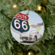 Panneau de la route 66 avec Chevrolet Corvette blanche 1961, et ligne avec les états pour montrer où la route court. Cette route emblématique va d'est en ouest de Chicago, Illinois à Père Noël Monica, Californie. Même si la route 66 n'existe plus techniquement, environ 85% de celle-ci est encore accessible en voiture aujourd'hui !
