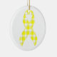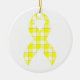 Montrez votre soutien et faites connaître la cause avec cet ornement en céramique à ruban jaune à carreaux pour la sensibilisation au cancer de la vessie, orné d'un ruban jaune vif sur un motif à carreaux élégant. Parfait pour décorer votre sapin de Noël, votre maison ou votre bureau, cet ornement honore le courage, la force et la résilience de ceux touchés par le cancer de la vessie. Fabriqué en céramique durable avec une finition brillante, il allie beauté et signification dans un petit objet de collection. Le ruban jaune vibrant se détache sur le fond à carreaux, symbolisant l'espoir, la solidarité et l'autonomisation de la communauté du cancer de la vessie, ce qui en fait un cadeau attentionné ou un rappel personnel de soutien.
