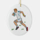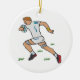 Rugby player in full flight carrying the ball. Ready to hand off any tackler - this ball is going all the way to the try line.
