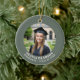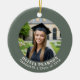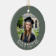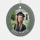 Celebrate your graduate's success with this elegant, modern graduation photo ornament. The front features a sophisticated sage green border framing your chosen photo, with customizable curved text for the graduate's name and class year. The reverse side features a complementary pale pink background with space for your own personalized, heartfelt message of congratulation. This minimalist keepsake makes a beautiful gift from parents, grandparents, or friends.