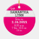 Salut à la typographie du Monde script manuscrit en jolie peinture à la craie rose, avec texte noir contre arrière - plan blanc. Bordure circulaire verte. Insérez le nom du bébé sur le côté arrière en noir sur la bordure blanche en argent. Statistiques de naissance en typographie blanche contre arrière - plan rose. REMARQUE : Si vous insérez uniquement le prénom, il vous suffit de retourner l'exemple de deuxième prénom du modèle texte. Conception de devis d'origine © 2023 TamiraZDesigns.