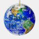 Sauvez-le ! - L'ornement rond avec le style de mosaïque pixelated le graphique de la terre - l'hémisphère de l'ouest sur un latéral, hémisphère oriental de l'autre.