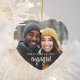 Conçu pour les couples modernes qui débutent leur voyage de traditions de vacances ensemble, ce magnifique ornement en céramique en forme de coeur mêle texte de script contemporain avec une photo complète personnalisée plus vos noms et l'année. Cet ornement est à double face, vous pouvez voir votre photo préférée de n'importe quel angle pour créer un gardien intemporel et élégant avec une touche moderne. Une façon charmante d’honorer votre fiançailles en cette période de fêtes et un cadeau parfait pour les proches comme un souvenir qu’ils chériront.