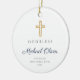 Script moderne Religious Boy Baptême Photo Ornement en céramique.