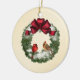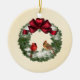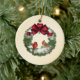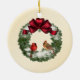 Un arrière - plan crème, décoré d'une couronne de sapin recouverte de neige avec un grand arc en satin rouge, et deux oiseaux mignons assis dessus. Accrochez-le sur votre arbre, décorez-le avec un cadeau ou une couronne. Vous pouvez même le personnaliser en ajoutant votre propre texte !