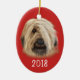 L'ornement Keepsaké présente une charmante illustration d'un chien de mouton sur un arrière - plan rouge festif. Personnaliser avec année ou autre texte spécial