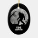 Ornements de Noël de Squatchin allés par cool. Silhouette de Bigfoot avec l'arrière - plan gigantesque de lune.