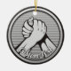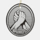Médaille ronde en argent avec deux mains en lutte au bras. Couleur arrière - plan personnalisée. Texte personnalisé des deux côtés.