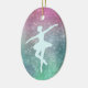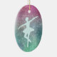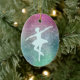 Voici un élégant ornement de Noël qui présente une ballerine en silhouette argentée couleur aqua. L'image est placée sur un arrière - plan multicolore scintillant qui comprend le rose, le turquoise et le vert. De minuscules étoiles argentées font briller l'arrière - plan.L'arrière de l'ornement a le même arrière - plan, mais avec deux champs de texte pour vous de customiser. N'importe quel danseur adorerait cet ornement ! *Si vous souhaitez une forme différente et que vous devez repositionner la figure ou le texte, utilisez la Personnaliser et faites glisser l'image vers l'emplacement souhaité.