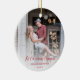 Un ornement photo de typographie moderne avec un design simple avec "First Christmas Engaged" dans un élégant script rouge avec vos noms et année sur votre photo fiançailles préférée. Ajoutez la même photo sur les deux côtés ou une autre sur chaque côté. Donnez ce ornement à un couple nouvellement engagé ou gardez-le pour vous-même.