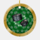Snare Drums ~ Argent ~ Vert ~ Or ~ Noël ~ Snare Drums Ornement de Noël Argent & Vert avec Notes musicales sur Arrière - plan d'or