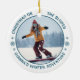 Celebrate the winter holiday season with this customizable photo ornament. The front of the ornament features a charming watercolor illustration of a snowboarding polar bear wearing a cozy hat and scarf, delicate falling snow, and customizable text that says, “Chasing Fresh Powder.” The back features space to add your own sentiment plus a photo to create a one-of-a-kind gift that’s perfect for snowboarders, ski lodge enthusiasts, or anyone who loves snowy adventures. Whether you're gifting it to yourself or friend or a family member, this ornament will make a heartwarming addition to anyone's holiday season. Makes a great Christmas stocking stuffer, too.
