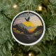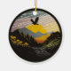 A broder with an eagle flying over a mountain, in the style of contemporary landscape, golden light, black mountain college, fisheye lens, arts and crafts movement, mid-century illustration