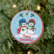 Personnalisez cet unique ornement de Noël "One Of A Kind" ! M. & Mme Frosty Le Snowman se promène dans un "pays des merveilles hivernales enneigé" ! Design artistique original par l'artiste Kerry Miller.