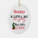 Nous vous avons laissé un espace pour insérer le nom de la personne chanceuse qui peut revendiquer le titre de "un peu coquin, 100% sobre". Qu'il s'agisse d'un ami, d'un membre de la famille, ou même de vous-même, cet ornement est une question de plaisir bon enfant. Cette décoration est un excellent ajout à votre sapin de Noël ou une drôle de surprise pour l'arbre d'un ami. C'est une façon délicieuse de rendre votre saison des Fêtes un peu plus joyeuse.