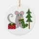 Une jolie scène avec une petite souris de Noël tenant un bas vert rempli de fromage. Un cadeau rouge et un sapin de Noël mettent l'accent sur la scène.