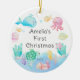 Le premier ornement de Noël du bébé présente la vie marine la plus adorable. Personnalisez avec vos informations et votre date pour bébé et vous êtes tous prêts à partir! Magnifique cadeau de conservation daté pour le 1er Noël de votre bébé.